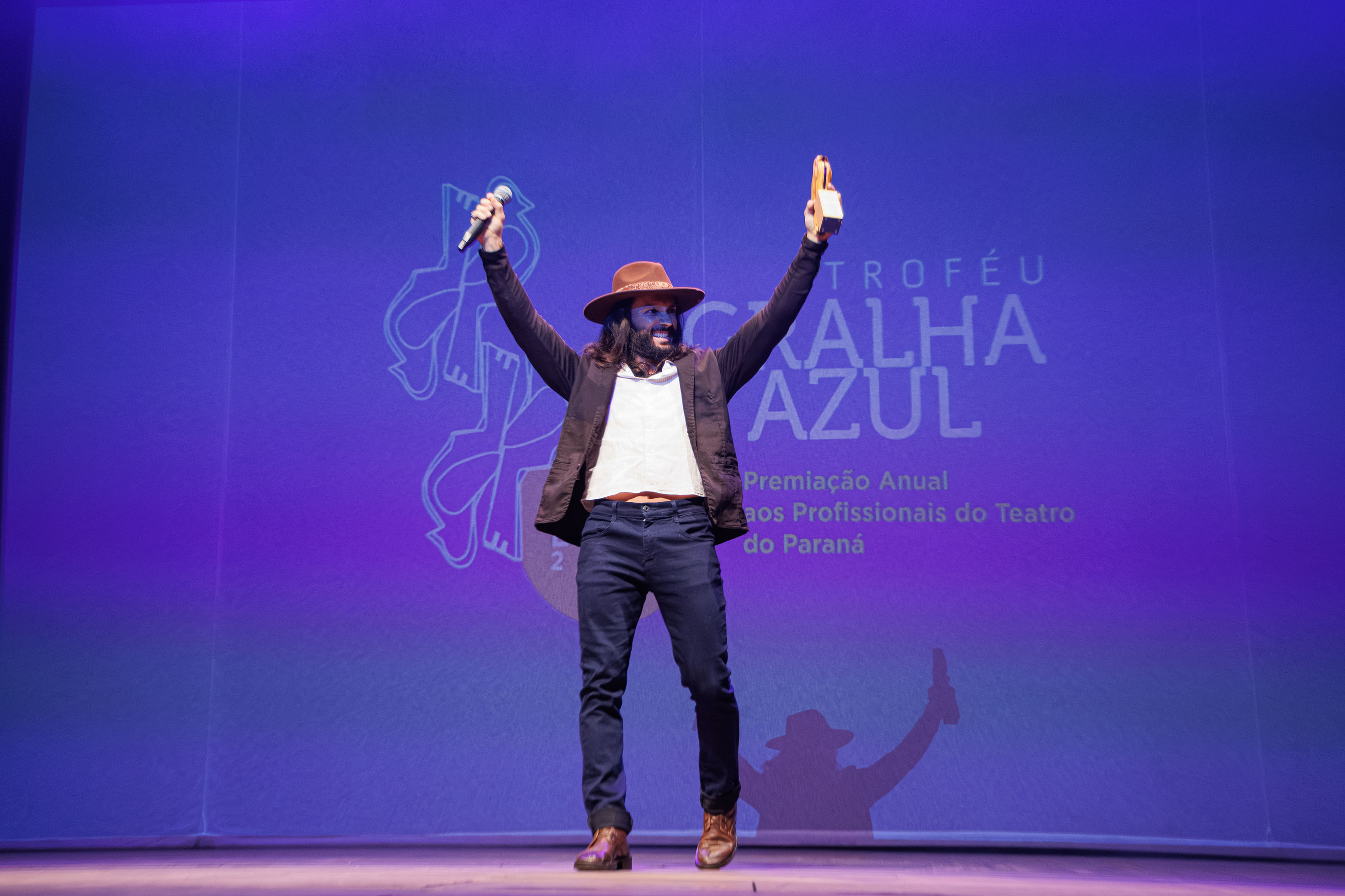 Dois ex-alunos do curso de Artes Cênicas da UEL receberam o Troféu Gralha Azul na noite da última segunda-feira (01), em Curitiba. A premiação, que comemora meio século de história, consagrou a diversidade e a descentralização da cena teatral paranaense, premiando espetáculos e profissionais da Capital e de outros municípios do Paraná.